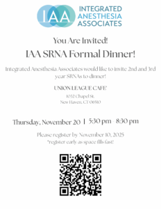 Join us for the IAA SRNA Formal Dinner — an elegant evening of celebration, connection, and great company.